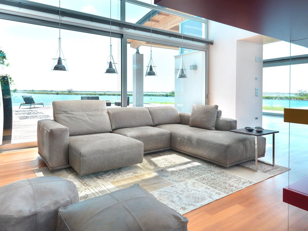 Focus Angolare combines elegant design with advanced comfort technology. Its hardwood frame and varnished metal components ensure durability, while the interwoven elastic webbing provides flexible support. The seat features a unique relax system, allowing extension up to 50 cm across four depth settings (55 cm to 105 cm), adapting to your preferred seating posture. The backrest adjusts smoothly to twelve positions using innovative “no fold marks” technology, offering prolonged comfort without creasing. Cushions filled with polyurethane and feathers enhance softness, making this piece a versatile solution for customized relaxation.