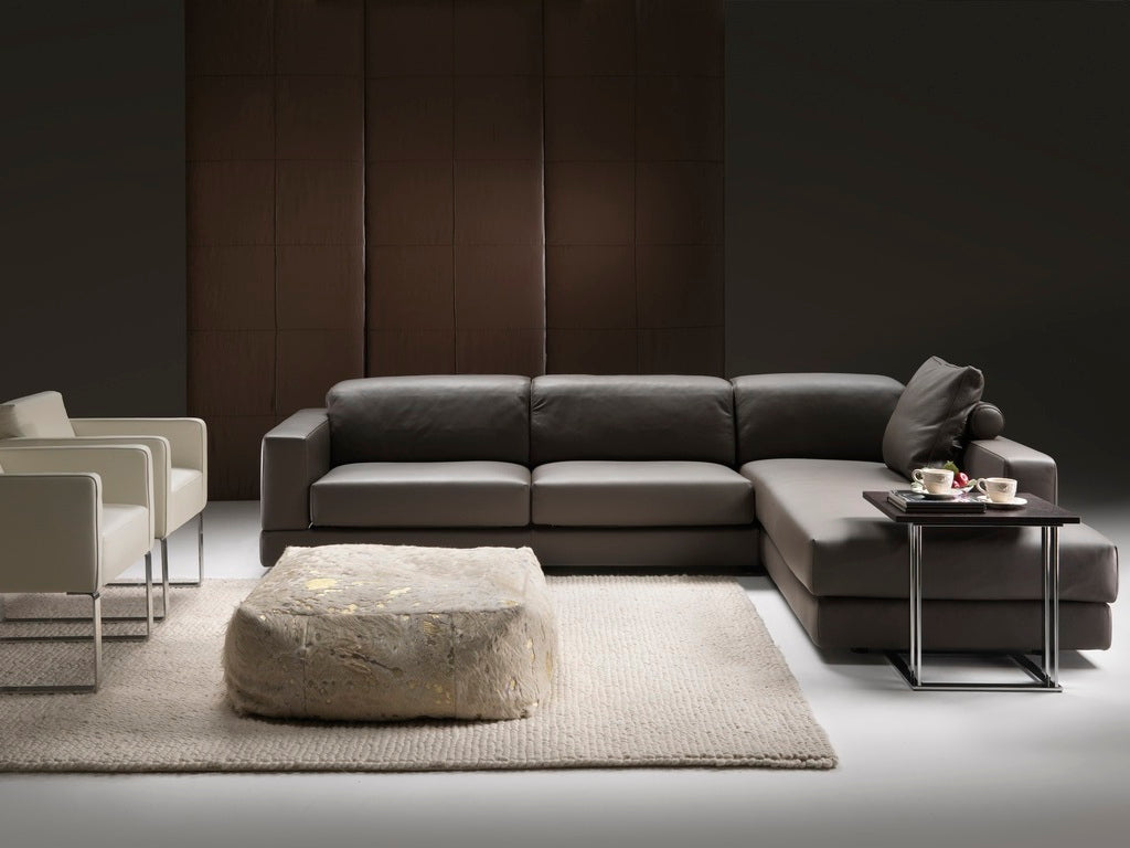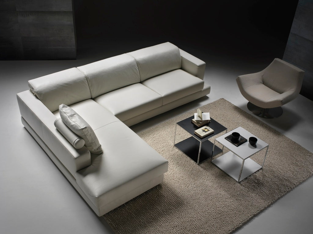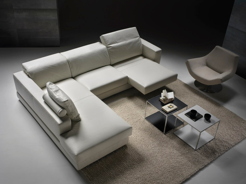 The Ghost Angolare sofa features a sleek, linear design paired with Gyform’s innovative mechanism, allowing each seat to extend in four positions up to 50 cm with hidden extensions. Its backrest reclines in twelve positions using advanced “no crease” technology for lasting comfort. Constructed with a hardwood frame, varnished metal components, and interwoven elastic webbing, it offers durability and support. Cushions combine polyurethane, Dacron, and feathers for optimal softness. The back frame and armrests detach via a bayonet system, and fabric upholstery is fully removable, while leather coverings remain fixed. Available with long or short arms to suit your space.