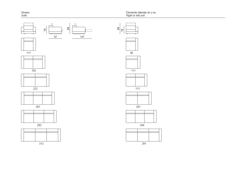 upholstery. Leather covering is fixed. Version with long or short arm for terminals and sofas (to specify in the order). Seat with relax system that allows to reach