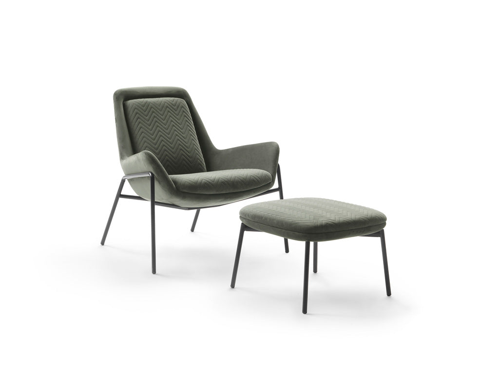 The Mia armchair features thin, essential lines with gentle inclinations that create a dynamic and elegant silhouette. Its metal framework and wood seat are fully molded with cold-cure polyurethane for durability and comfort. The base is available in polished chrome or matte black (RAL 9005), adding a refined touch to any living space. Designed for relaxation, the fixed cover ensures a sleek, seamless appearance, making Mia a sophisticated and versatile addition to your home.