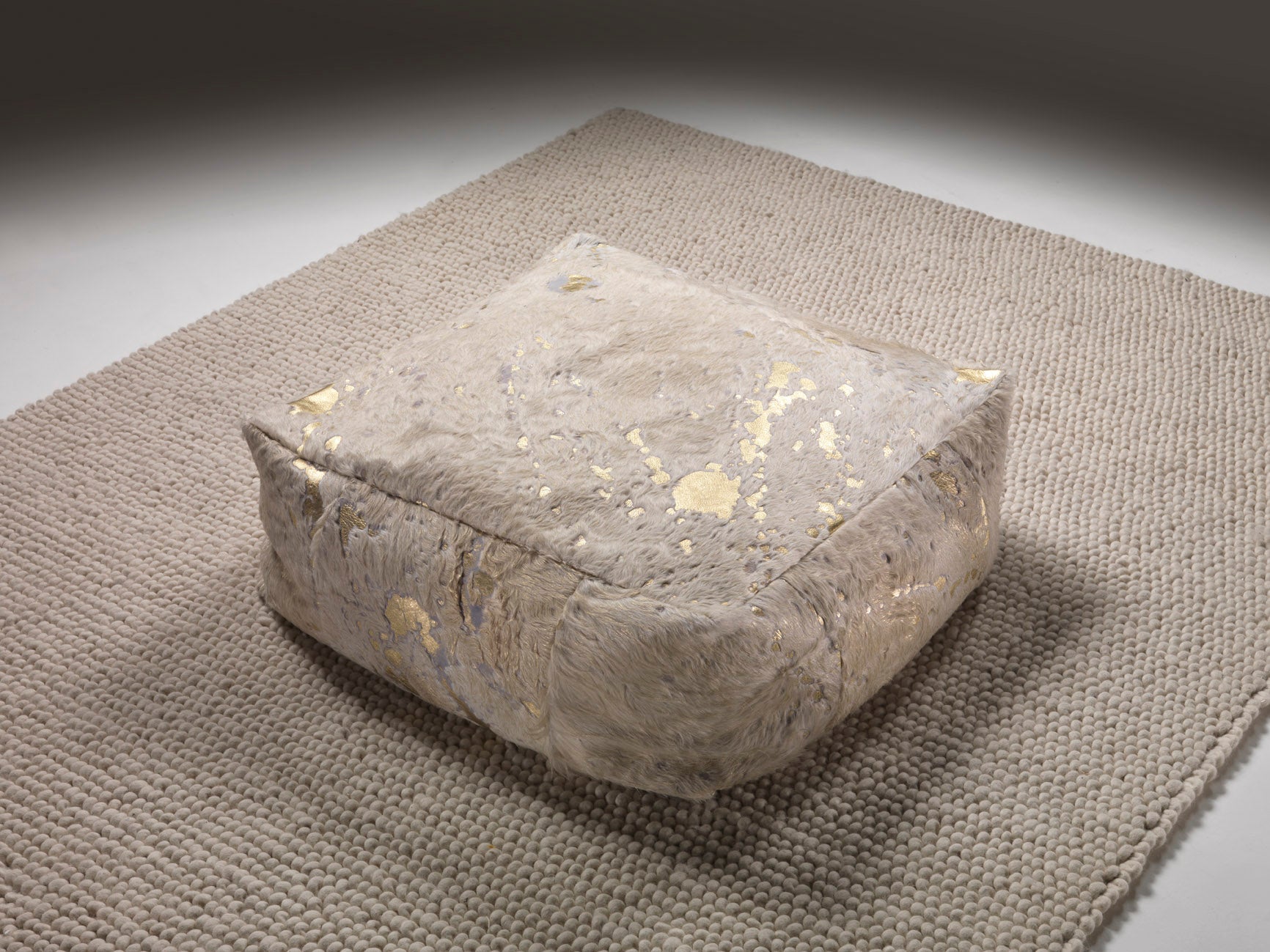 The Molly ottoman, measuring 80x80 cm, combines elegant design with practical comfort. Available in pony white laminate with gold accents or pony coffee gold laminate, it features a filling of polystyrene microspheres that provide supportive yet adaptable cushioning. The removable cover ensures easy maintenance, making it a versatile and stylish addition to any living space.