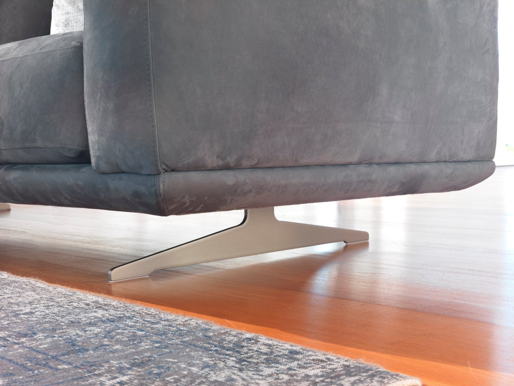 Smart Divano features a contemporary design with clean, linear forms accentuated by a distinctive suspended structure. Its hardwood frame is coated in polyurethane and lined with protective fabric, ensuring durability. The seat, back, and arm cushions combine polyurethane and feather for balanced comfort. Supported by bronzed or chrome metal legs, this sofa offers fully removable fabric upholstery for easy maintenance, while the leather option is fixed. Smart Divano brings refined elegance and lasting quality to any living space.