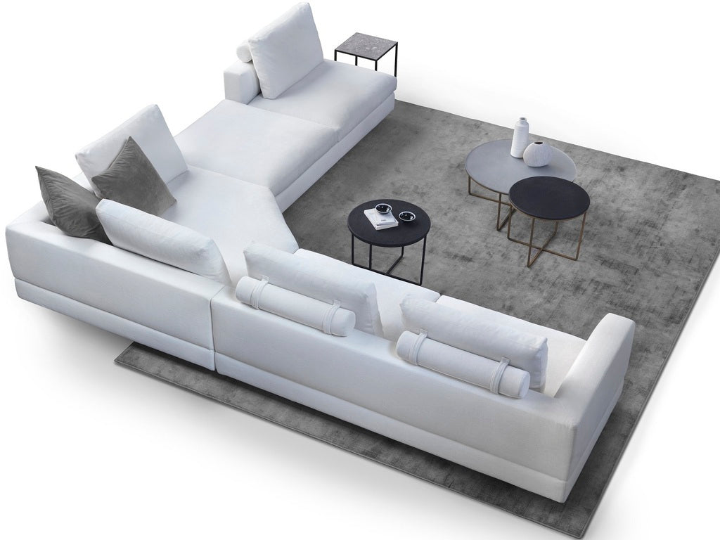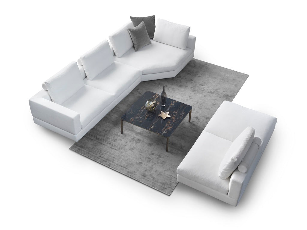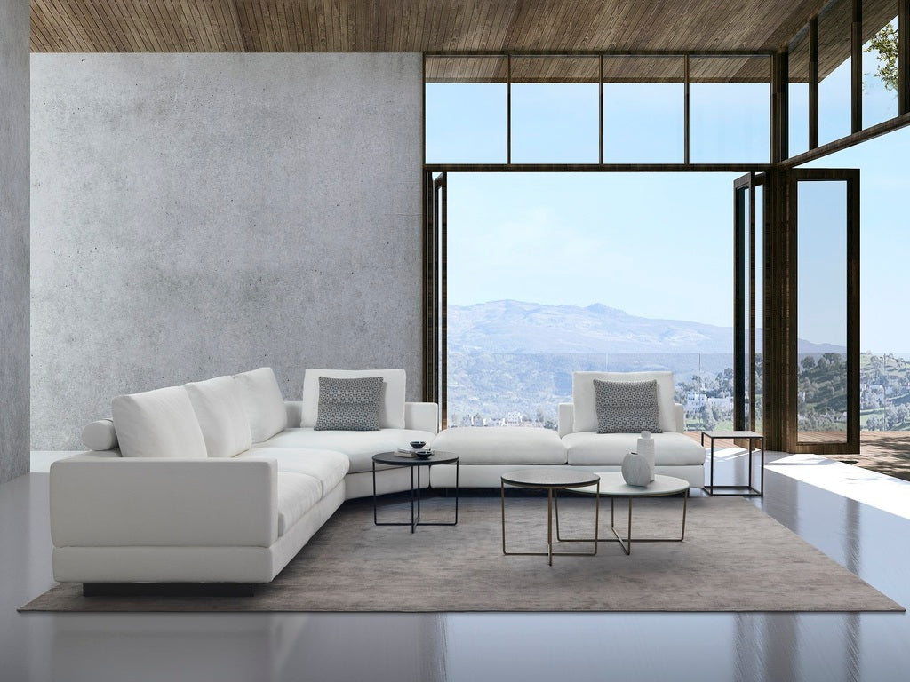 The Vogue seating system combines refined design with versatile functionality, offering sofas, corner units, chaise-longues, terminals, and footstools to tailor your living space precisely. Its hardwood frame, reinforced with interwoven elastic webbing and cushioned with a blend of polyurethane and feather, ensures lasting comfort and support. The bronze-painted metal base elevates the sofa, creating a sleek floating effect. Upholstery features fully removable fabric covers for easy maintenance, while the fixed leather frame cover adds durability. This collection adapts seamlessly to personal style and spatial requirements with expert craftsmanship.